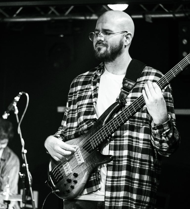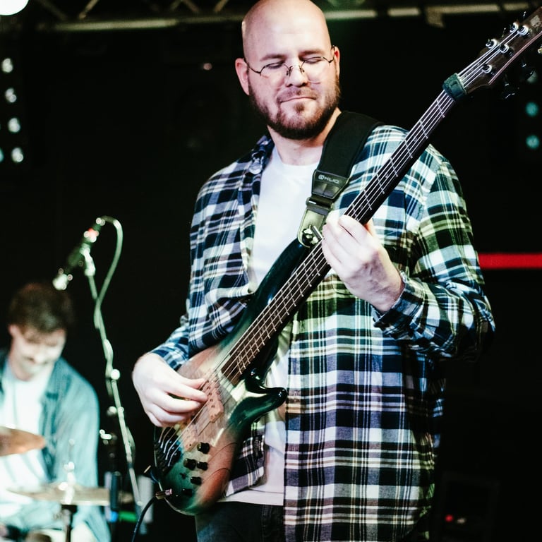 Brian joined Dan in 2021 with an early iteration of the band. As a multi-instrumentalist, playing drums and guitar in addition to bass, his understanding of the instruments, wide musical taste, and attention to detail adds a refined and groovy sound to the songs. Brian also serves as the band's primary producer, helping to shape and deliver the sound on the band's records.
